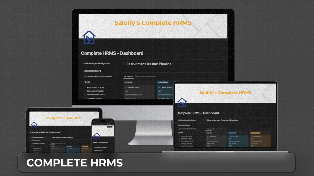 Experience the future of HR management with Saldify's enterprise-grade HRMS—a revolutionary all-in-one Notion workspace that transforms how organizations handle their human capital. This comprehensive system seamlessly integrates recruitment, onboarding, employee management, and engagement into one powerful solution.